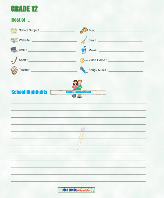 “The structured arrangement of (the book) serves as a valuable reminder to record things in the present. When completed, (High School Chronicles) will be a wonderful memory prompt/nostalgia-nudger in later life”. CM Magazine