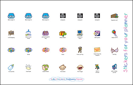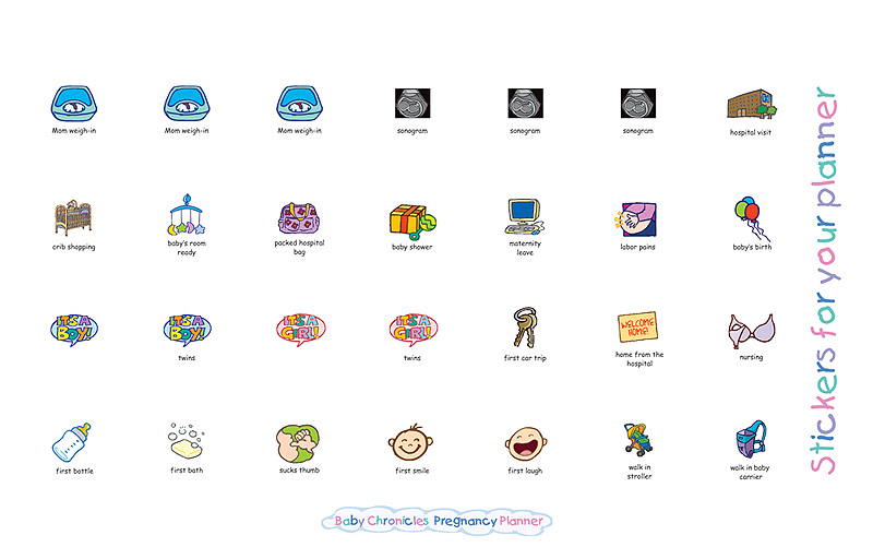 Baby Chronicles Pregnancy Planner is a 12-month perpetual calendar for moms-to-be. This pregnancy calendar helps new and expectant mothers stay organized and guides them through the maze of appointments, tests and physical changes so characteristic of this life-changing event. It has a plastic storage pocket to hold appointment cards, and sticker pages to use on the monthly calendar pages.